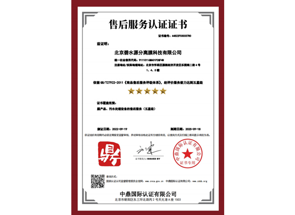 五星級(jí)售后服務(wù)認(rèn)證證書
